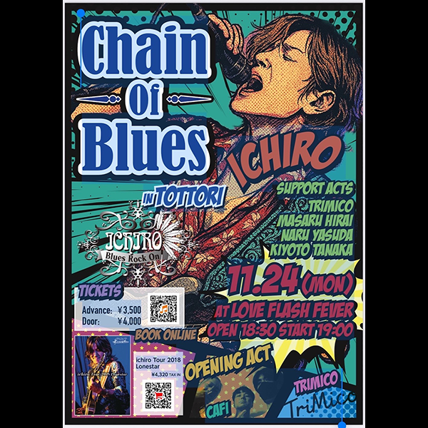 Cat Links Past Live Posted on 2025年11月24日2025年12月8日 Chain of Blues in Tottori 2025.11.24(Mon) ICHIRO support acts TriMico 20 Continue readingChain of Blues in Tottori 2025.11.24(Mon)